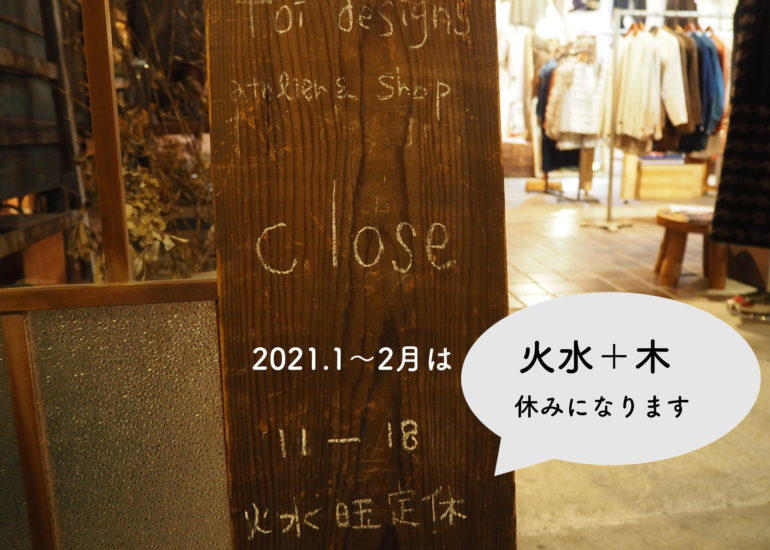 2021年1月2月は定休日が増えます